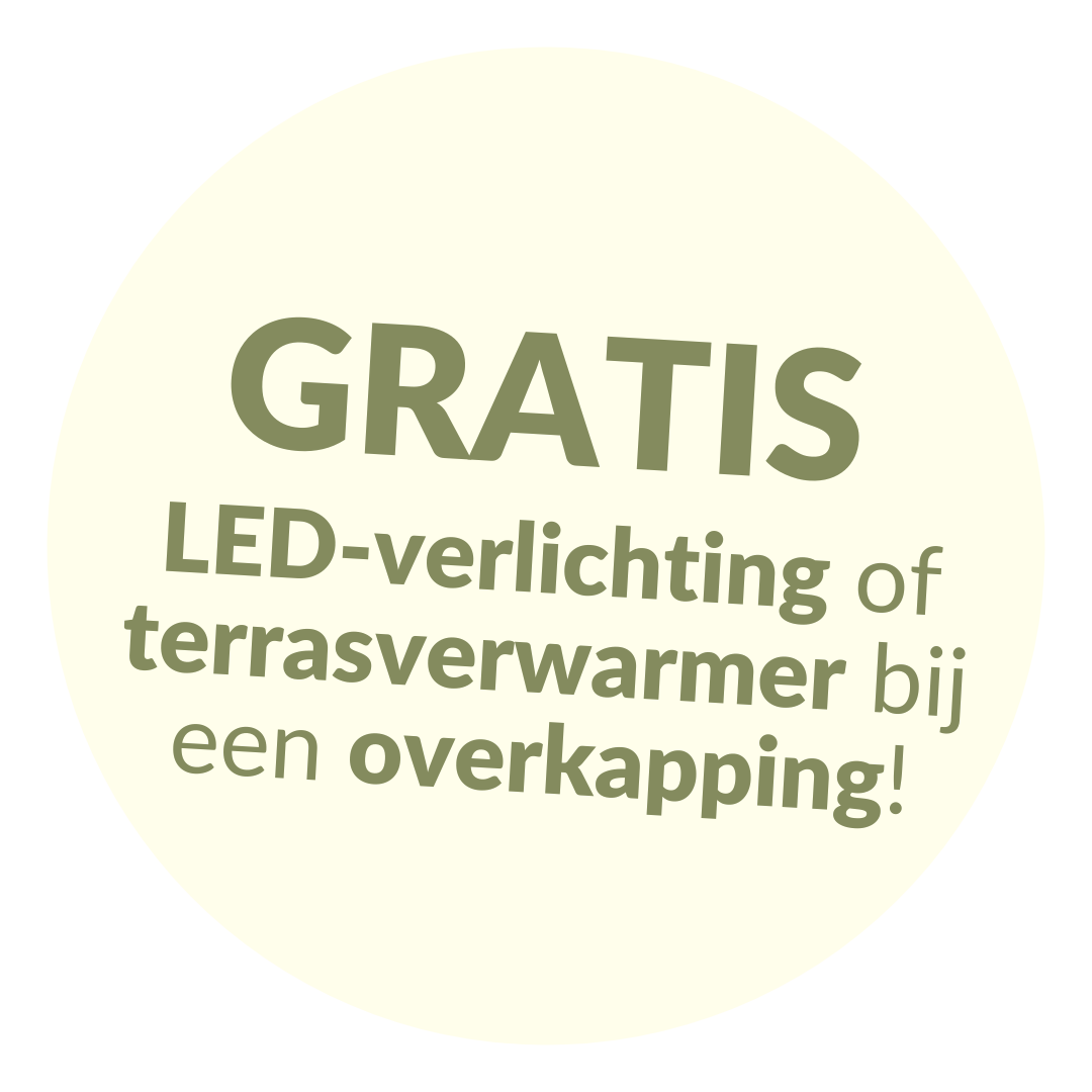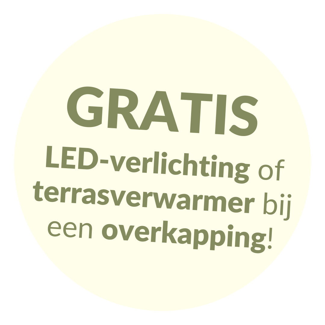 Bestel je aluminium overkapping vóór 31 december 2025 en ontvang gratis LED-verlichting of een terrasverwarmer!